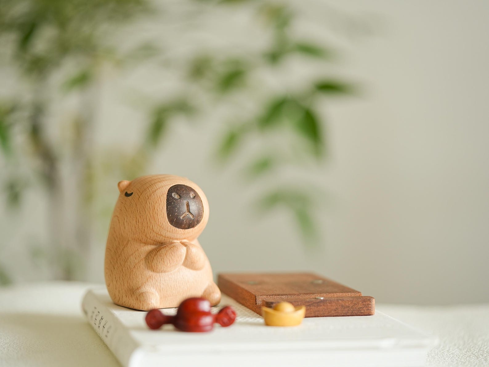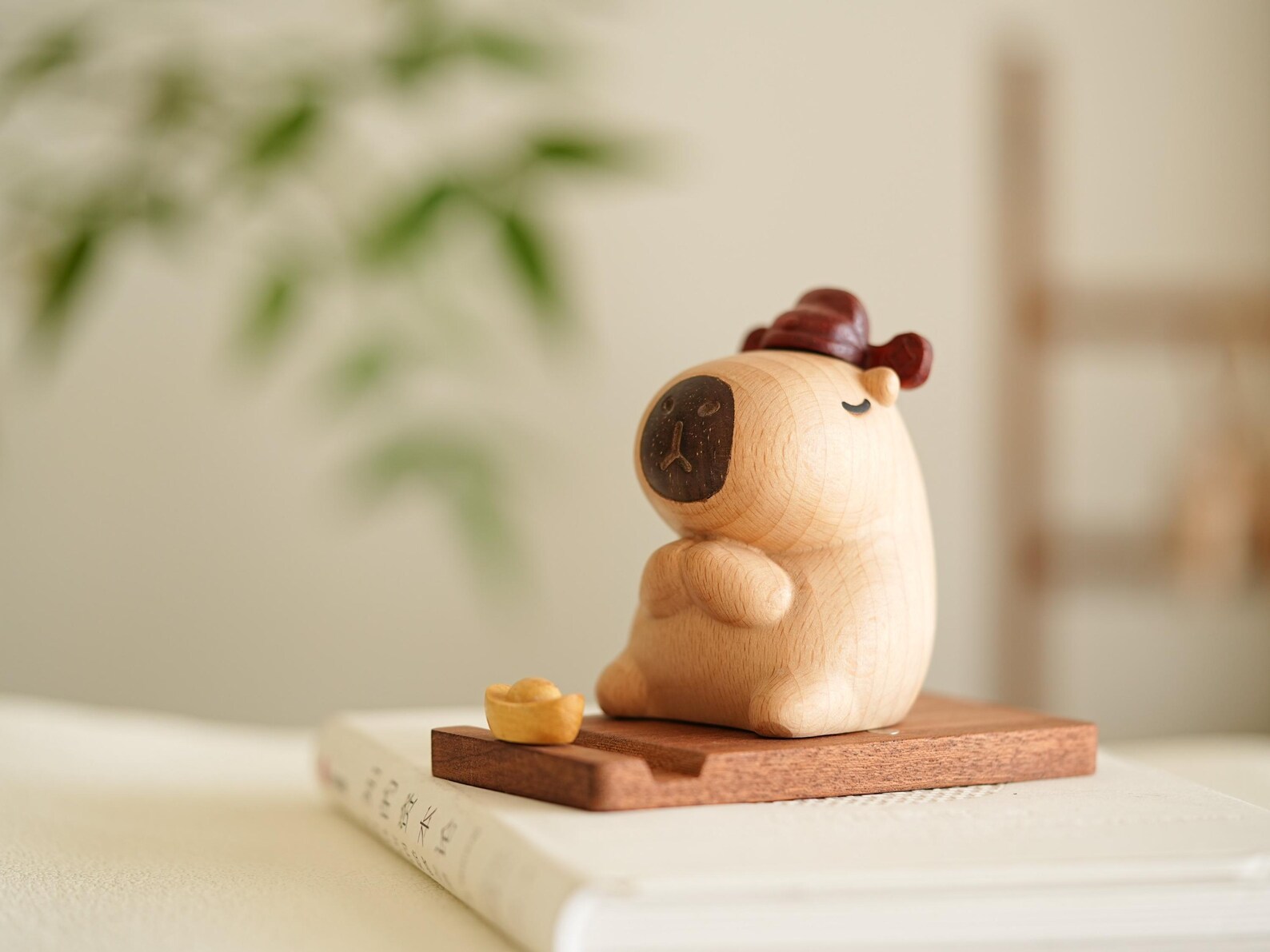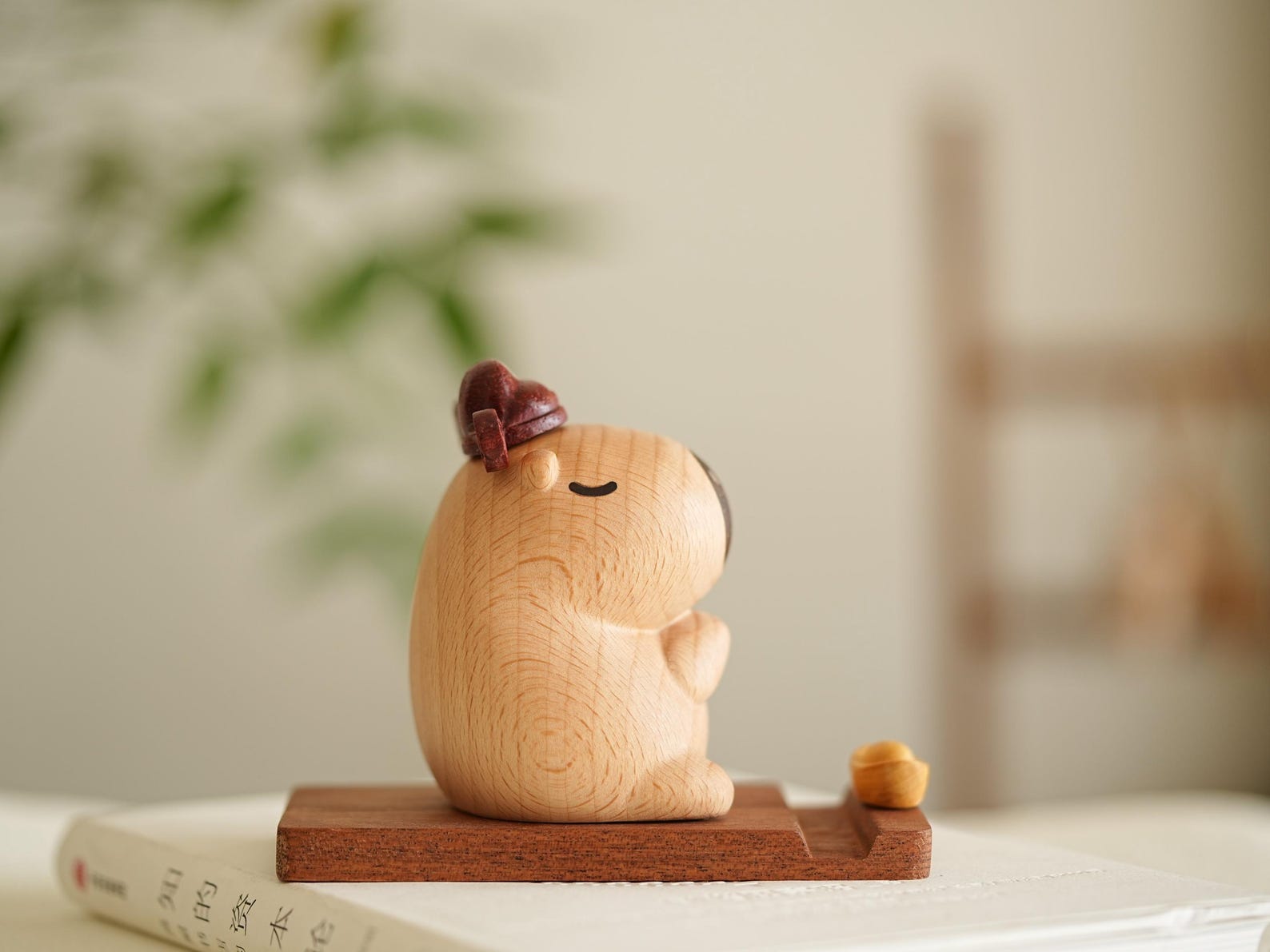 Capybara Wooden Phone Stand – Handcrafted Animal Figurine Cell Phone Holder Desk Decor