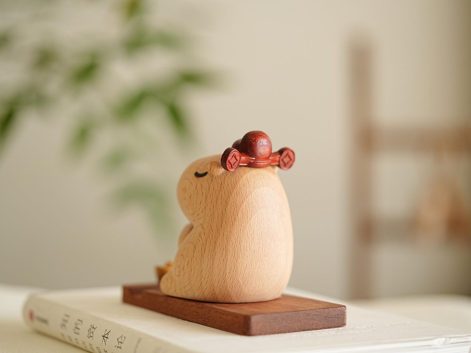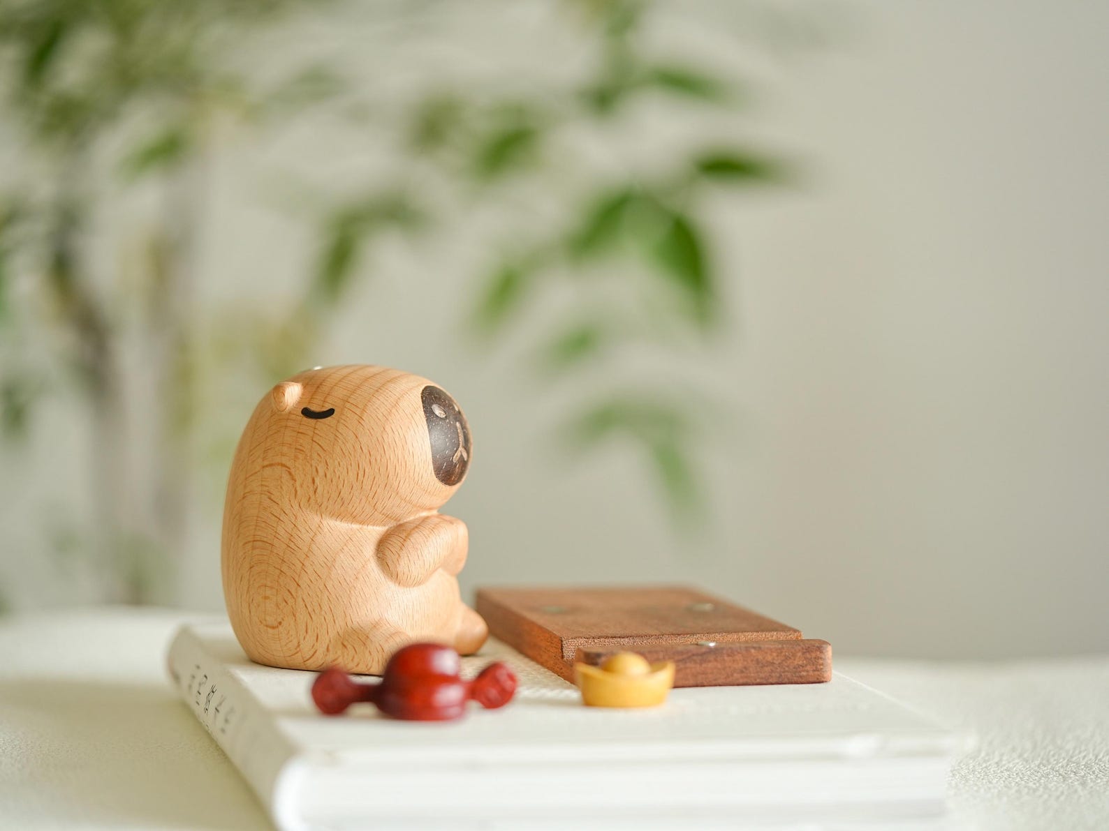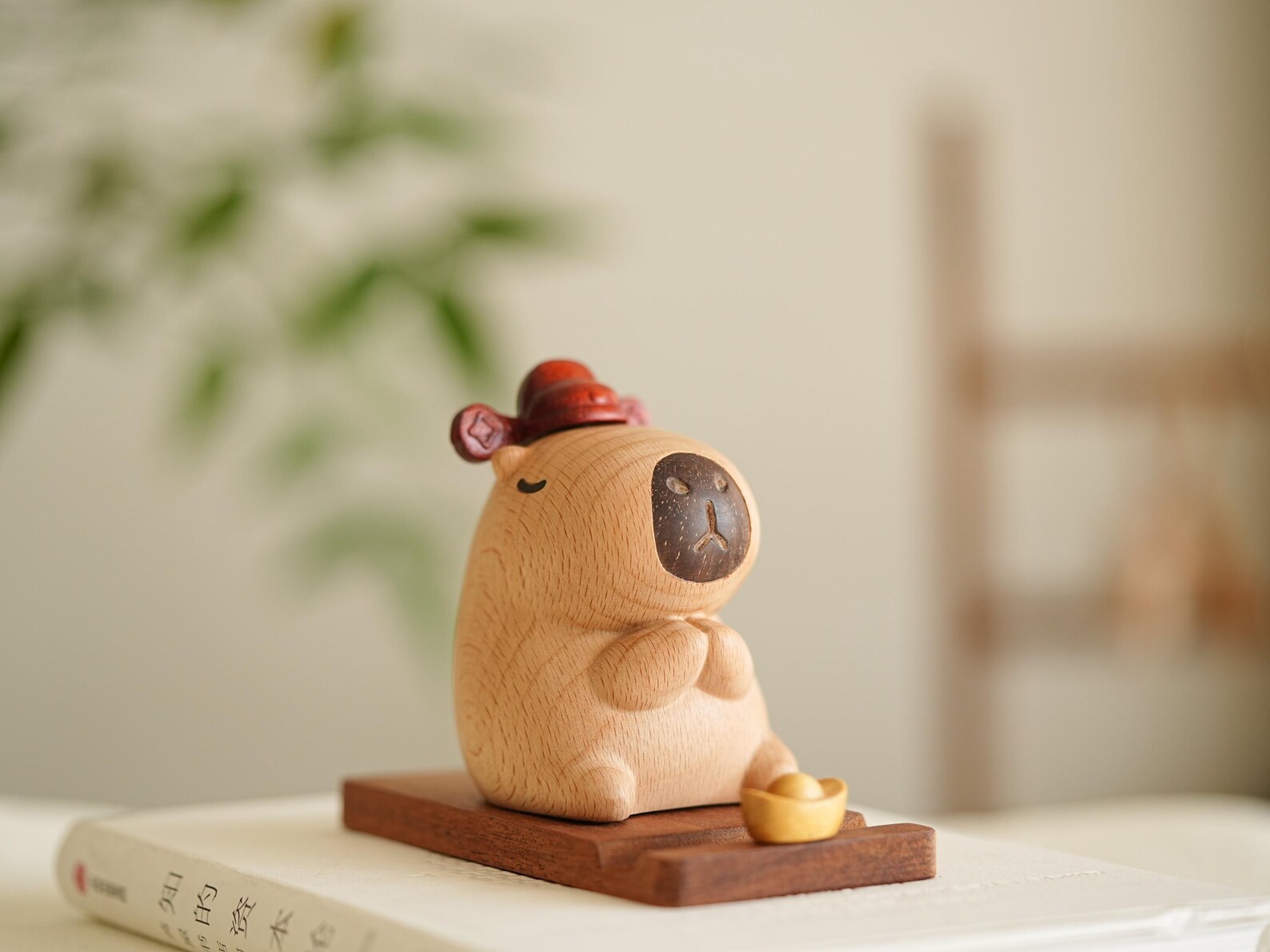 Capybara Wooden Phone Stand – Handcrafted Animal Figurine Cell Phone Holder Desk Decor
