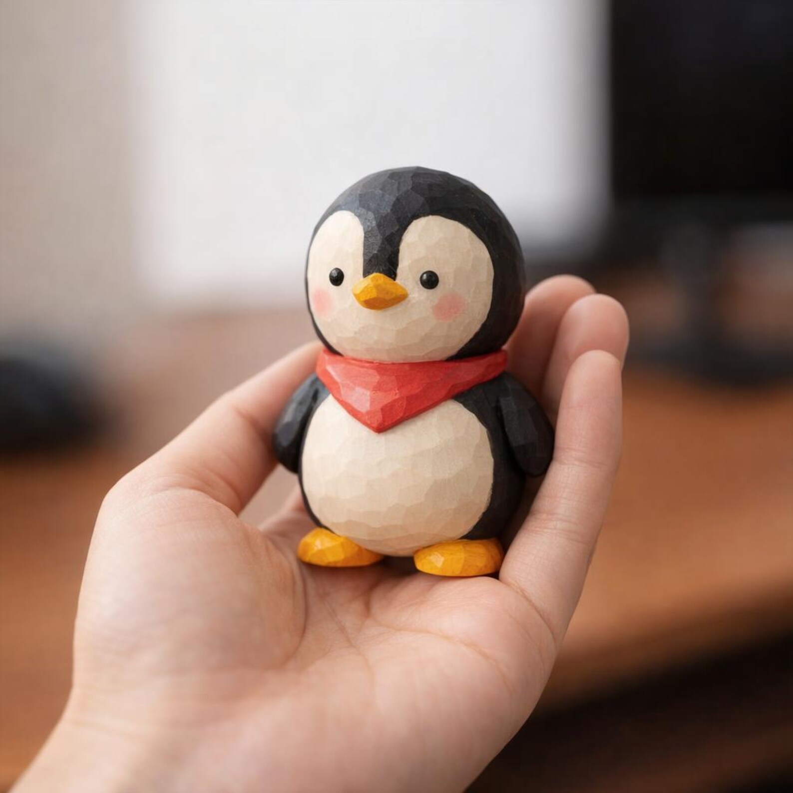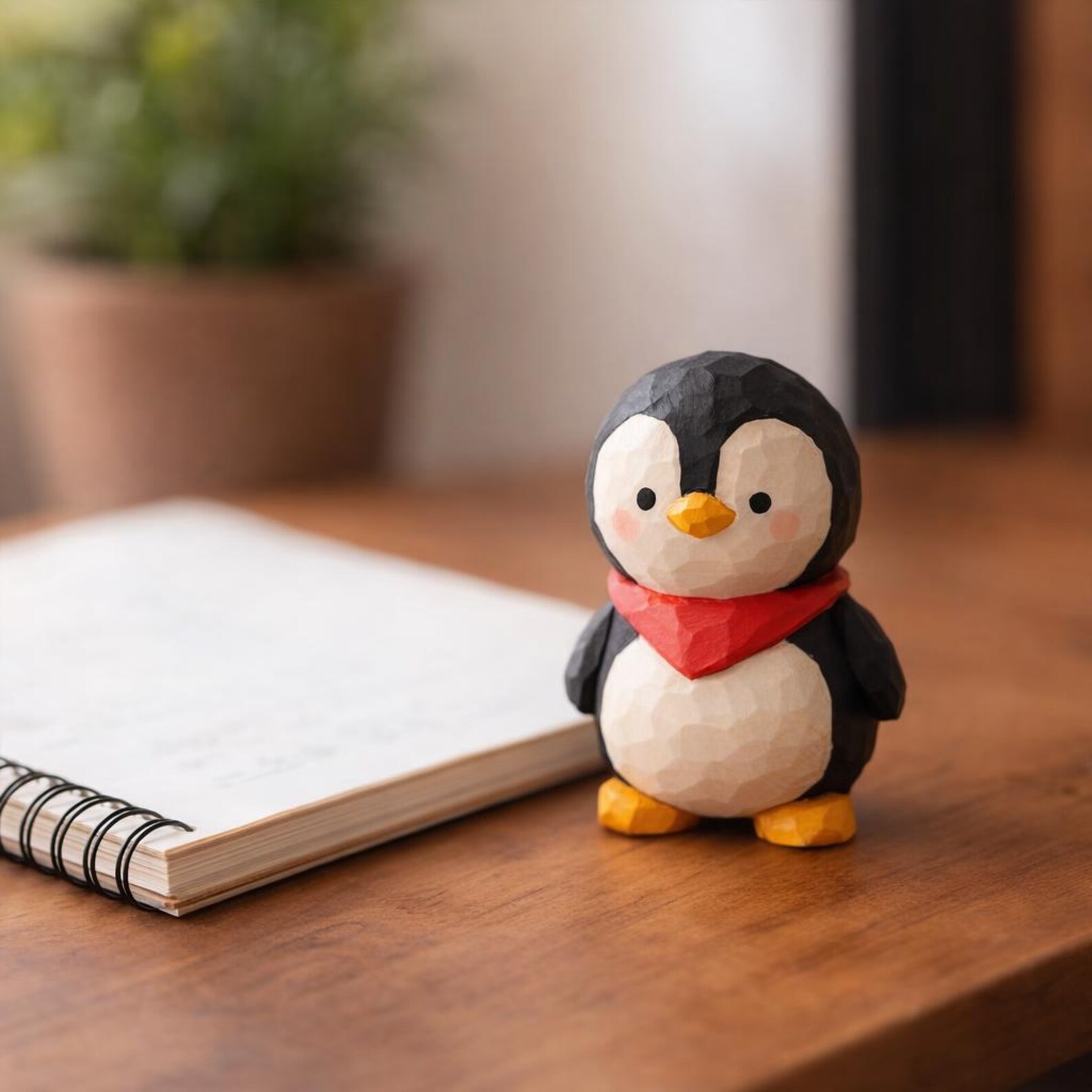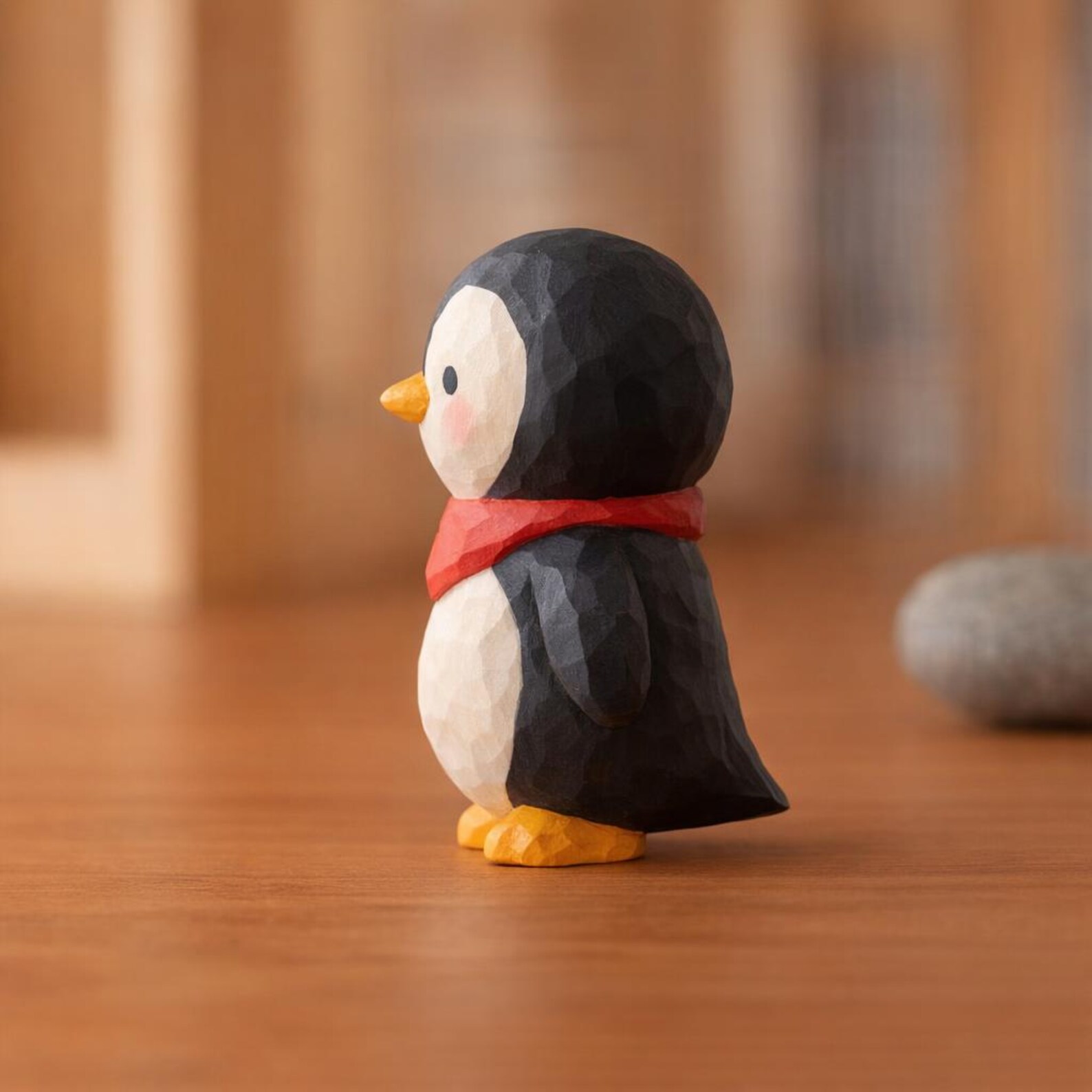 Hand Carved Wooden Penguin Figurine – Mini Penguin Desk Decor and Shelf Ornament